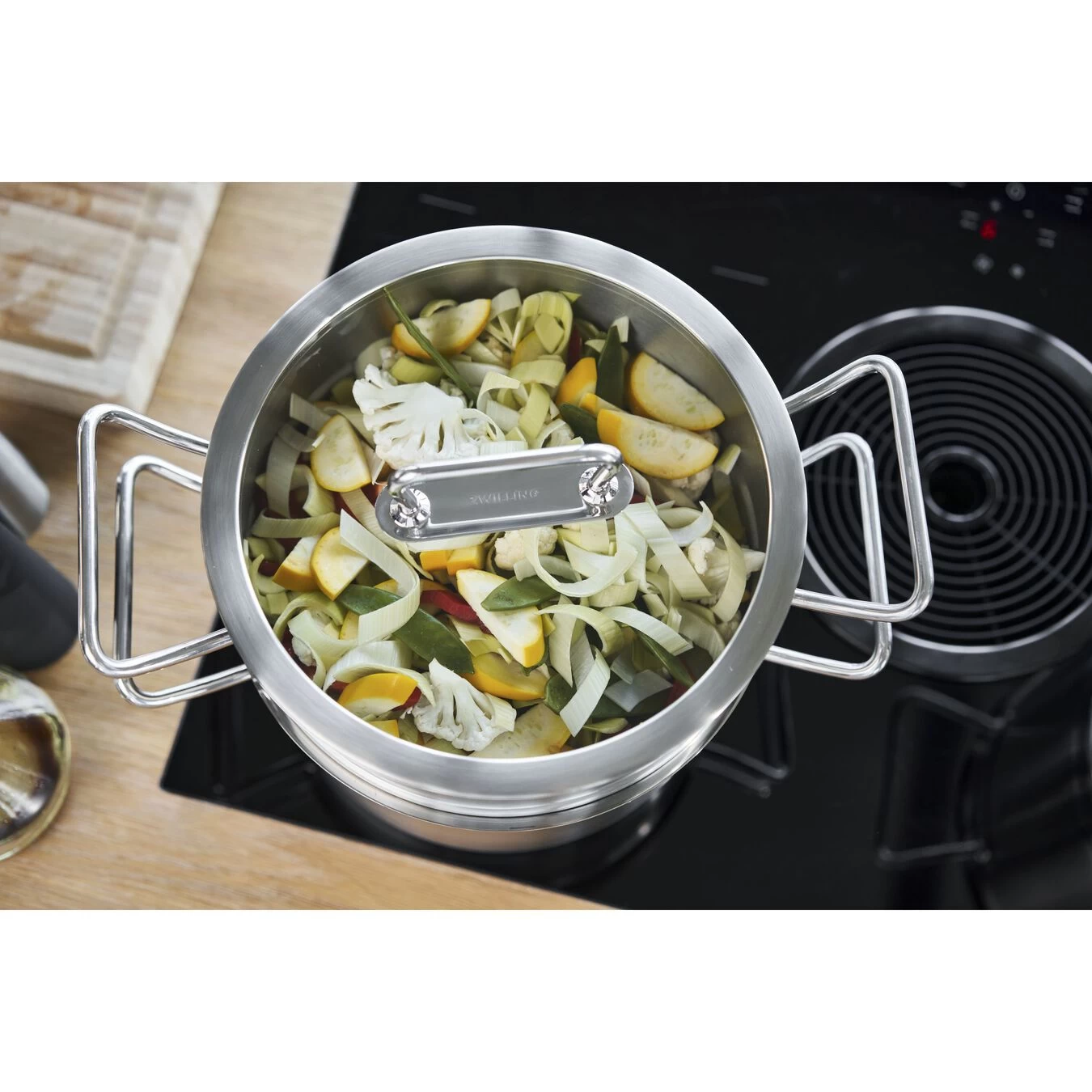 Mit dem Dämpfeinsatz verwandelt sich jeder Kochtopf ganz leicht in einen Dämpfer und bereitet Fleisch, Fisch, Gemüse und sogar Süßspeisen besonders schonend zu. Die verschiedenen Lebensmittel werden einfach in den Dünsteinsatz gelegt und im Wasserdampf gegart. Dabei kann nichts anbrennen, wertvolle Vitamine bleiben erhalten und Fleisch wird herrlich zart. Der praktische Topfeinsatz hat einen Durchmesser von 24 cm und passt auf jeden ZWILLING Topf mit demselben Durchmesser. Der Dünsteinsatz ist robust, langlebig und durch spezielle Materialveredelung besonders spülmaschinengeeignet. Das Design des Edelstahl Dampfgarers ist zurückhaltend minimalistisch und wirkt dadurch besonders professionell.