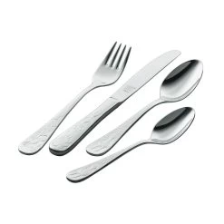 Kinder lieben Märchen. Froschkönig, Rotkäppchen und Sterntaler der Gebrüder Grimm beflügeln nicht nur die Fantasie der Kleinen. Das passende 4-teilige Kinderbesteck von ZWILLING hilft Kindern ab 3 Jahren auch dabei, selbstständig essen zu lernen. Das formstabile Besteck aus hochwertigem, hygienischem Edelstahl mit den geprägten Märchen-Motiven ist speziell auf die kleinen Hände abgestimmt. Die abgerundeten Löffelkanten, die Messerschneide ohne Wellenschliff sowie die abgestumpften Gabelspitzen sorgen dabei für mehr Sicherheit bei der Handhabung. Das Besteck in ZWILLING Qualität ist robust, langlebig sowie farbecht. Und durch das besondere Material auch perfekt für die Reinigung in der Spülmaschine geeignet.